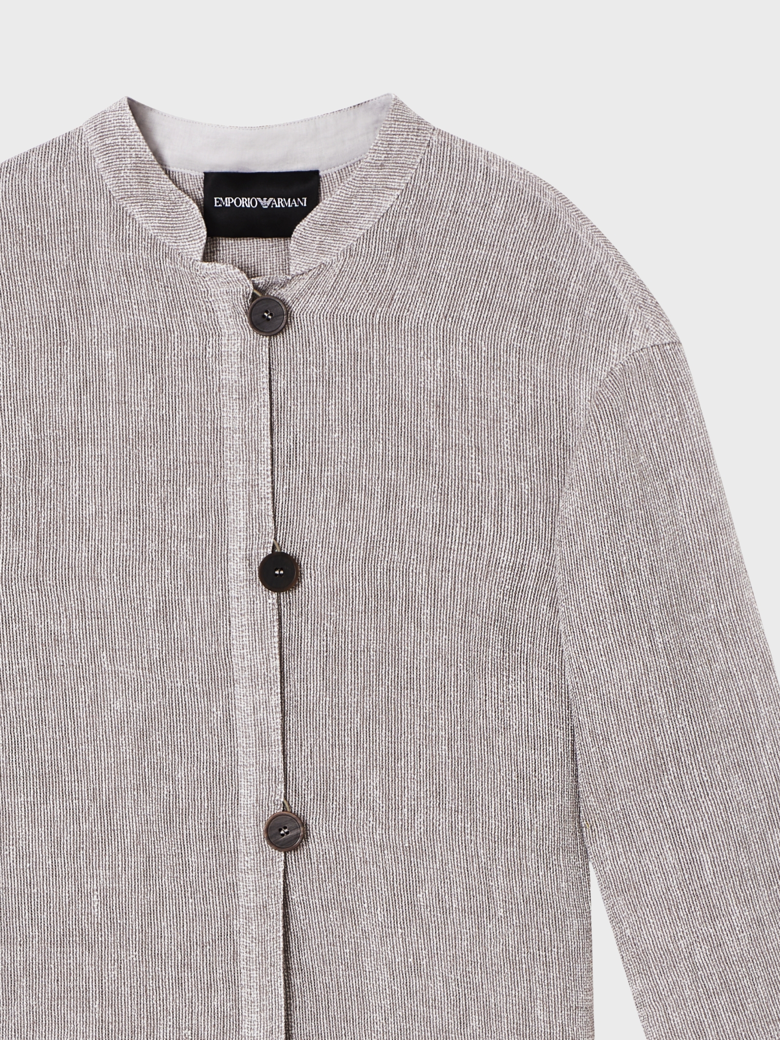 Shirt jacket crafted from lightweight and breathable linen gauze, perfect for warm weather. The natural texture with micro perforations creates a relaxed yet sophisticated look. Designed for dual wear, it can be styled as a shirt or as a lightweight outer layer for modern layered outfits.