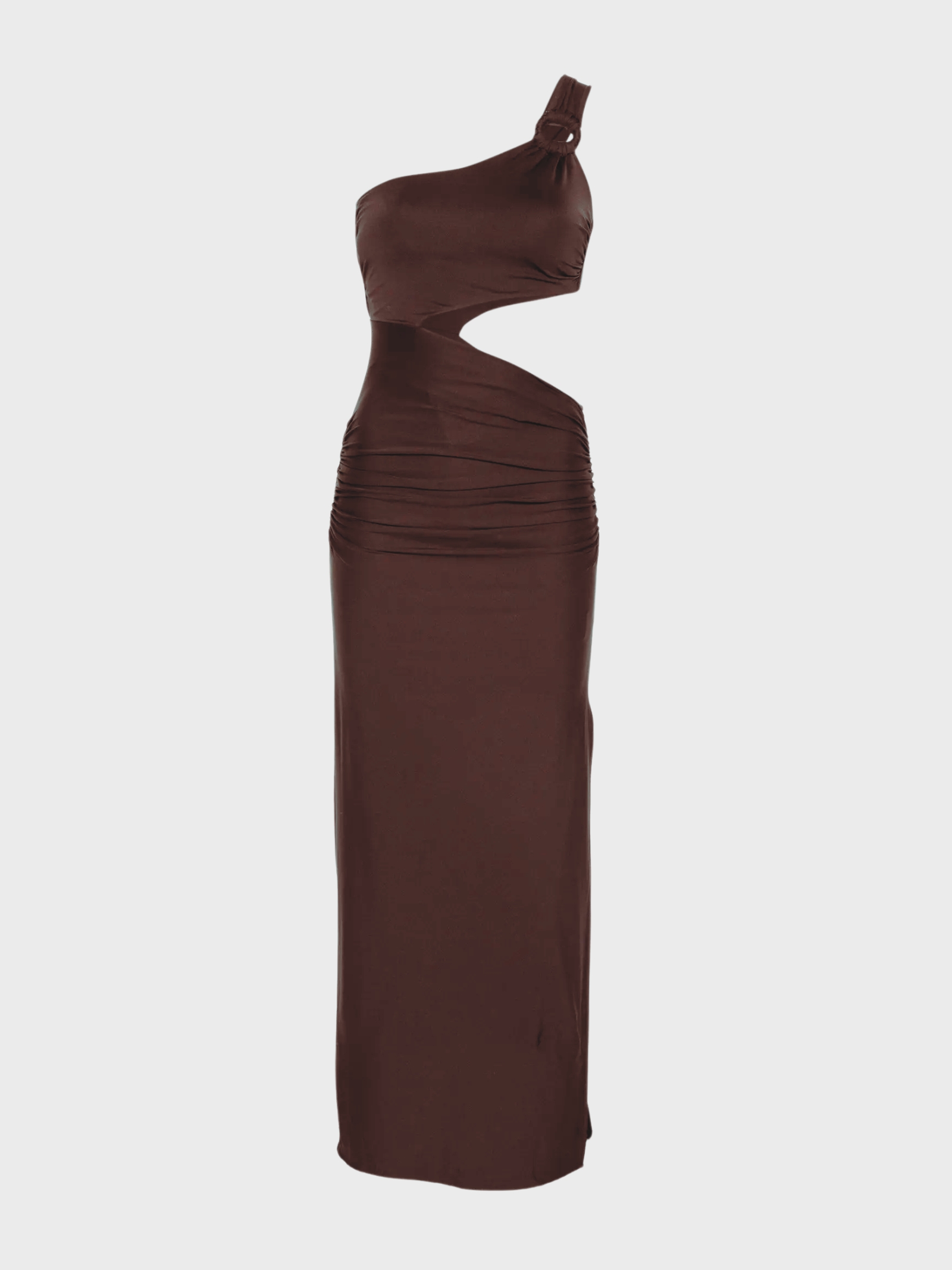 One-shoulder long dress with ring detail and cut-out