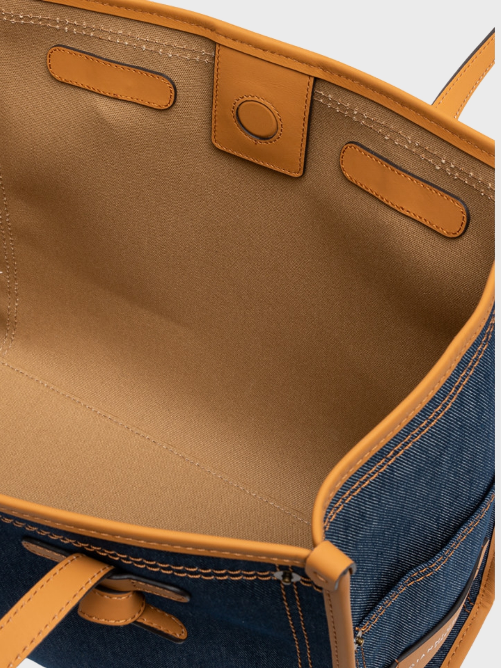Denim-effect shopping bag with leather details