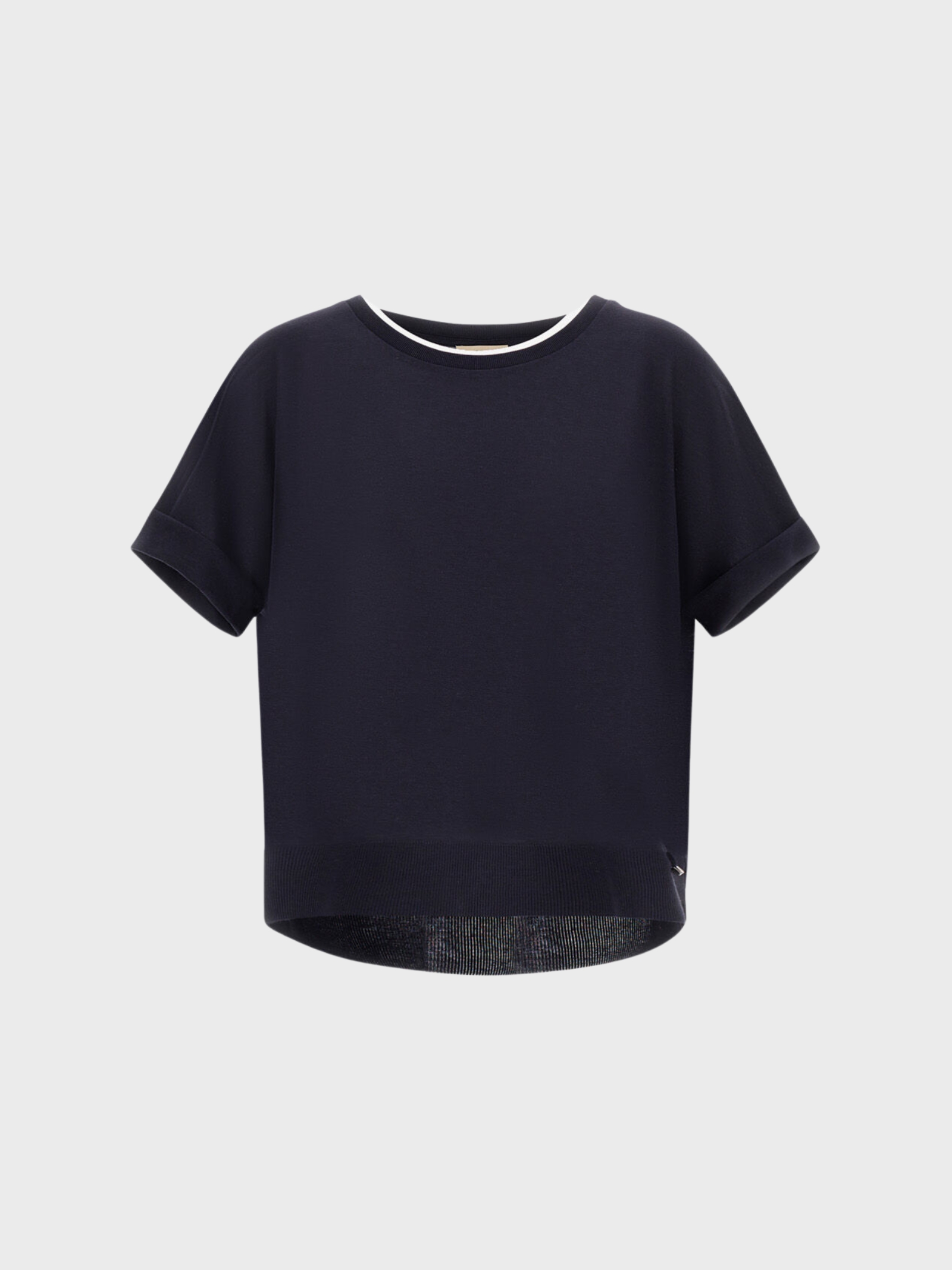 T-shirt crafted from lightweight and soft cotton and lyocell jersey, finished with ribbed knit details that create a subtle tricot effect. The striped pattern in fresh and sophisticated tones is inspired by the yachting world, adding personality to leisurewear. The boxy fit and boat neckline define a relaxed yet contemporary silhouette, perfect for refined casual looks.