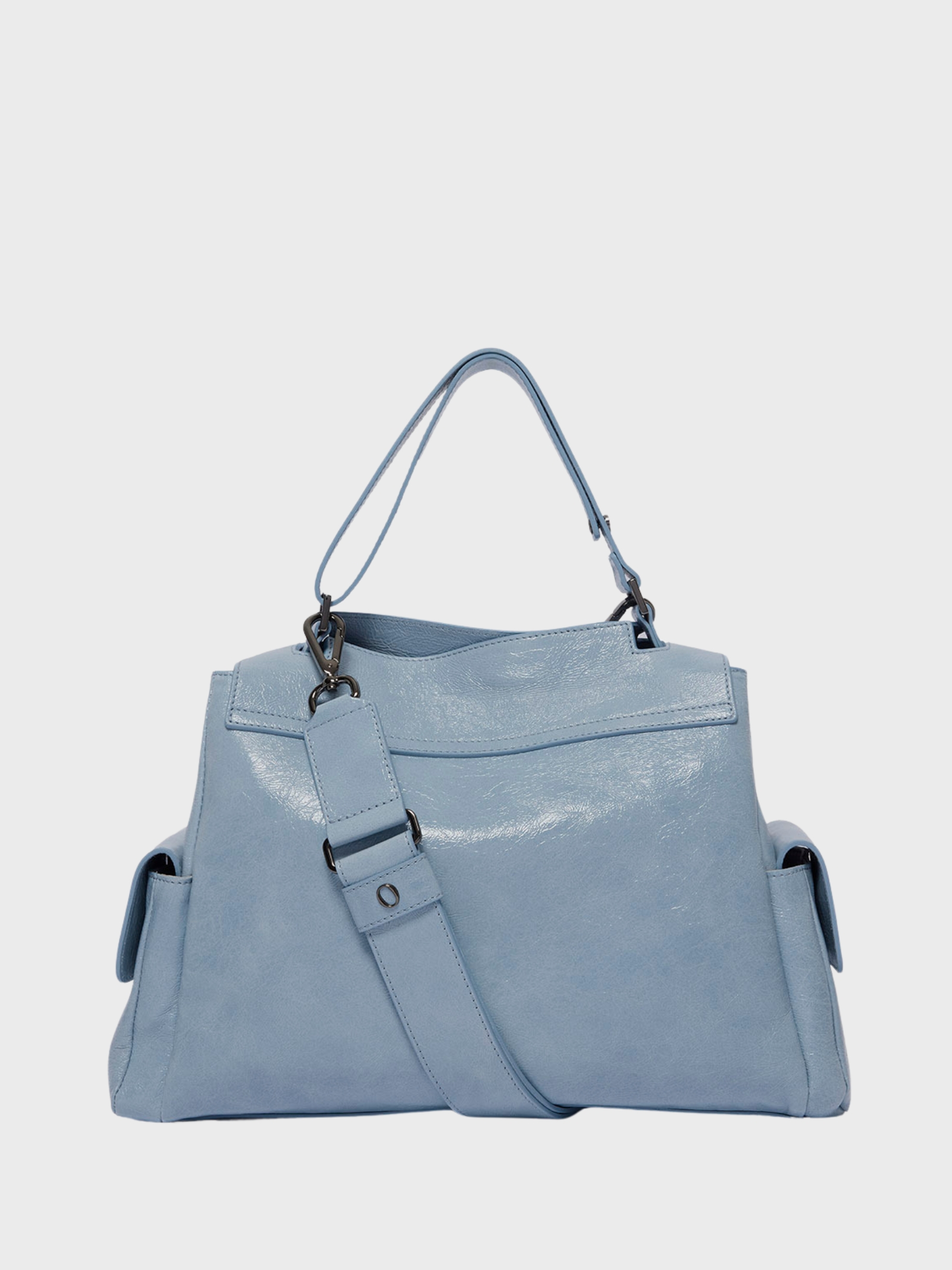The Sveva Stark Midi bag combines character and functionality; crafted from crinkled-effect leather, it features a spacious silhouette with external and internal pockets for practical organization. Equipped with an adjustable handle and removable strap, it can be worn on the shoulder or crossbody.