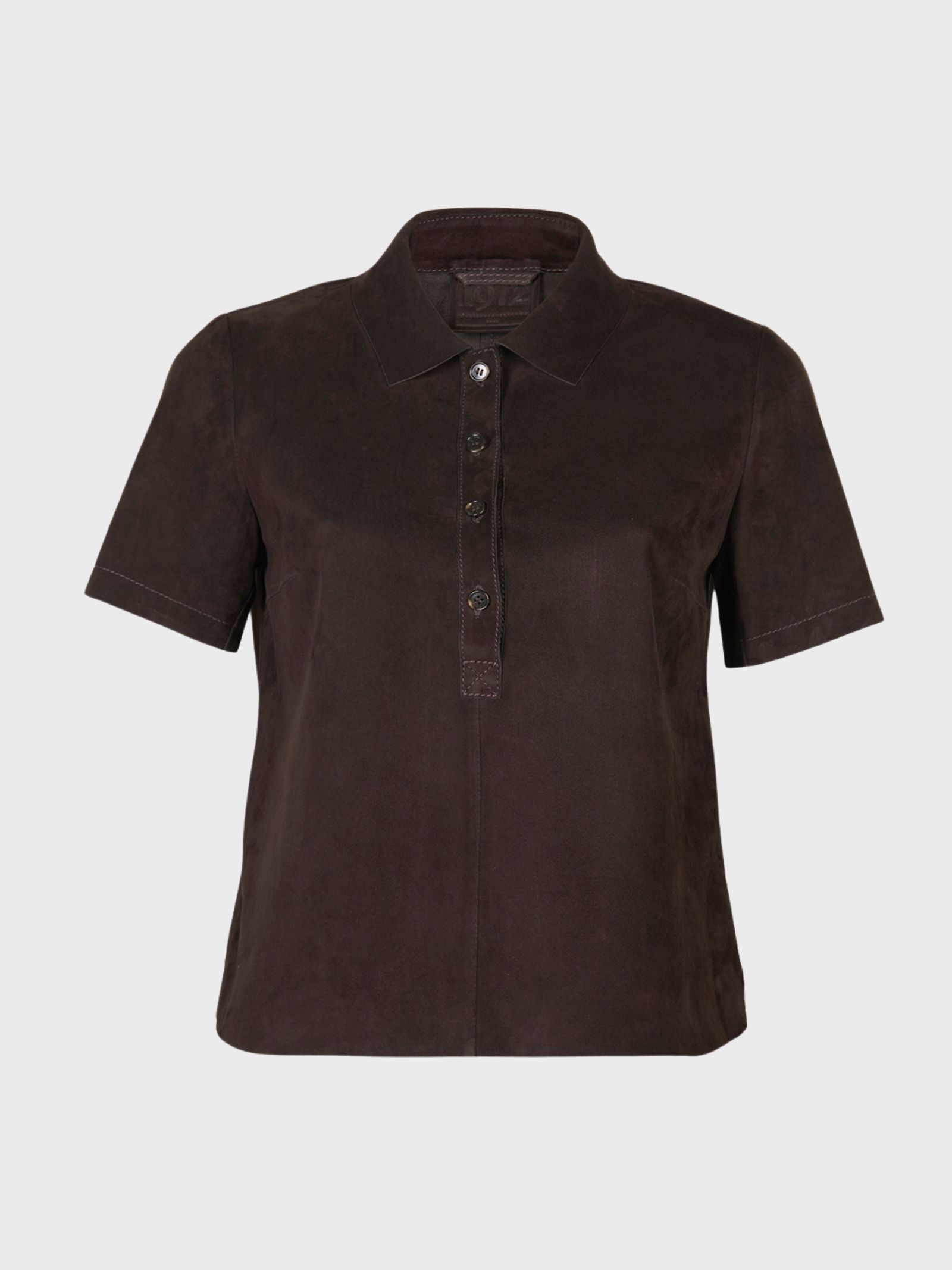 Top manica corta in crepe de chine misto seta con fondo in pizzo