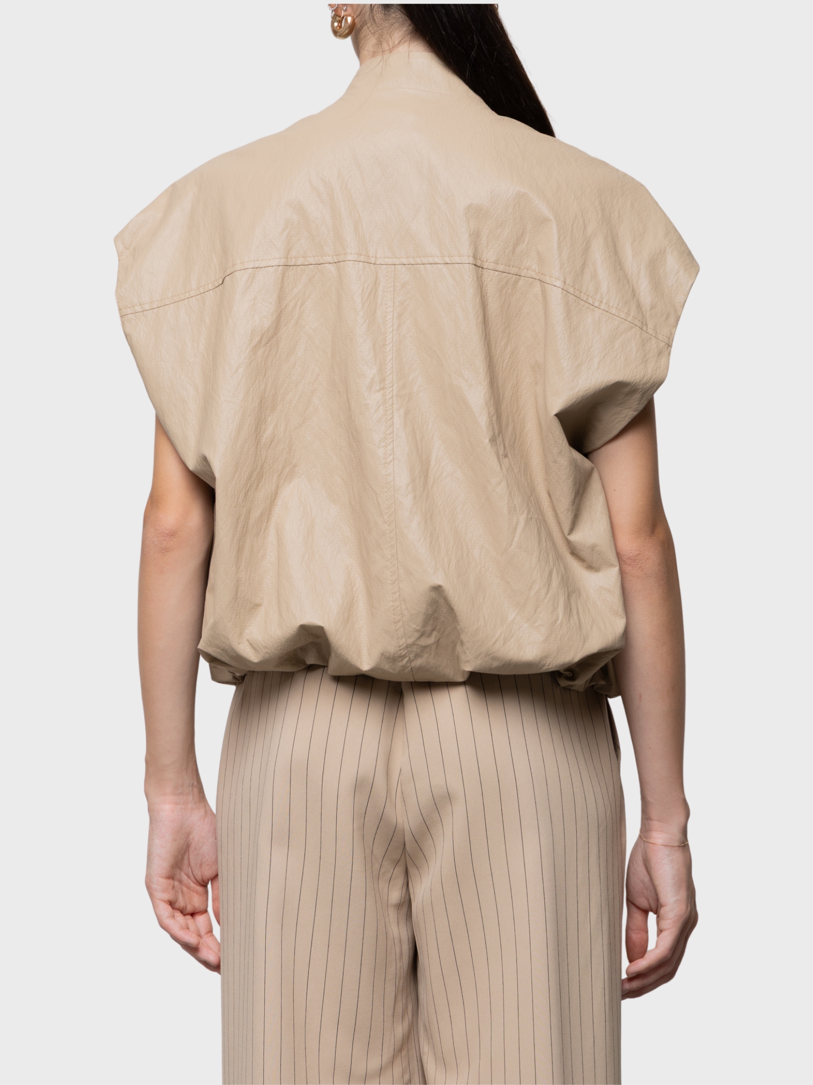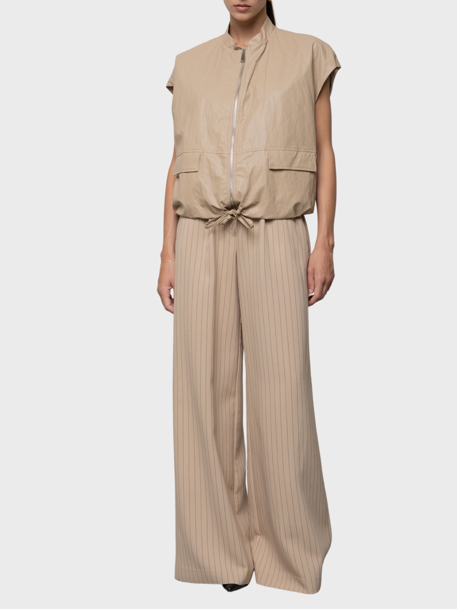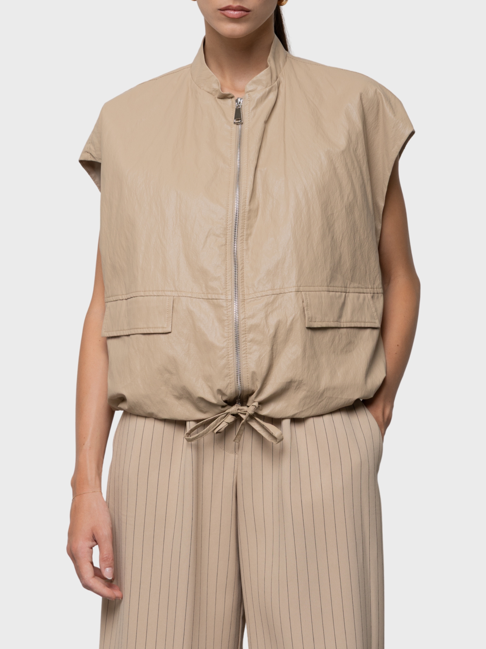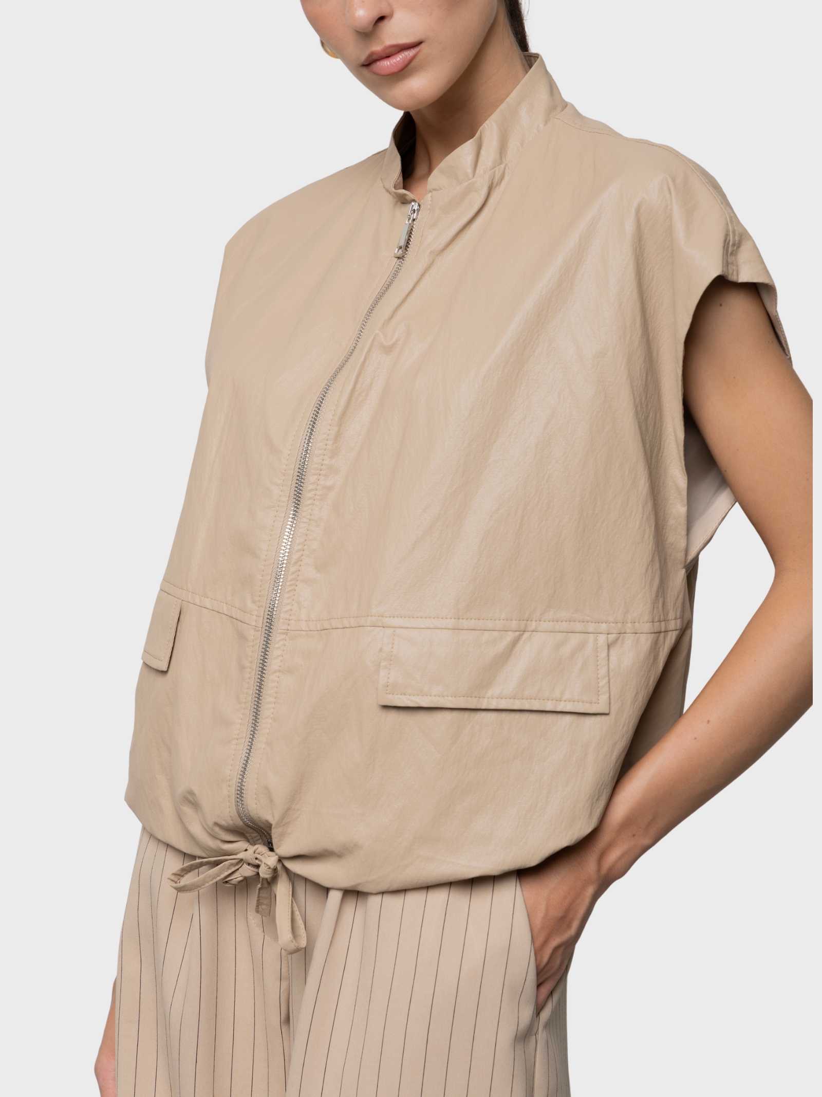Gilet con cintura in twill di viscosa e lino