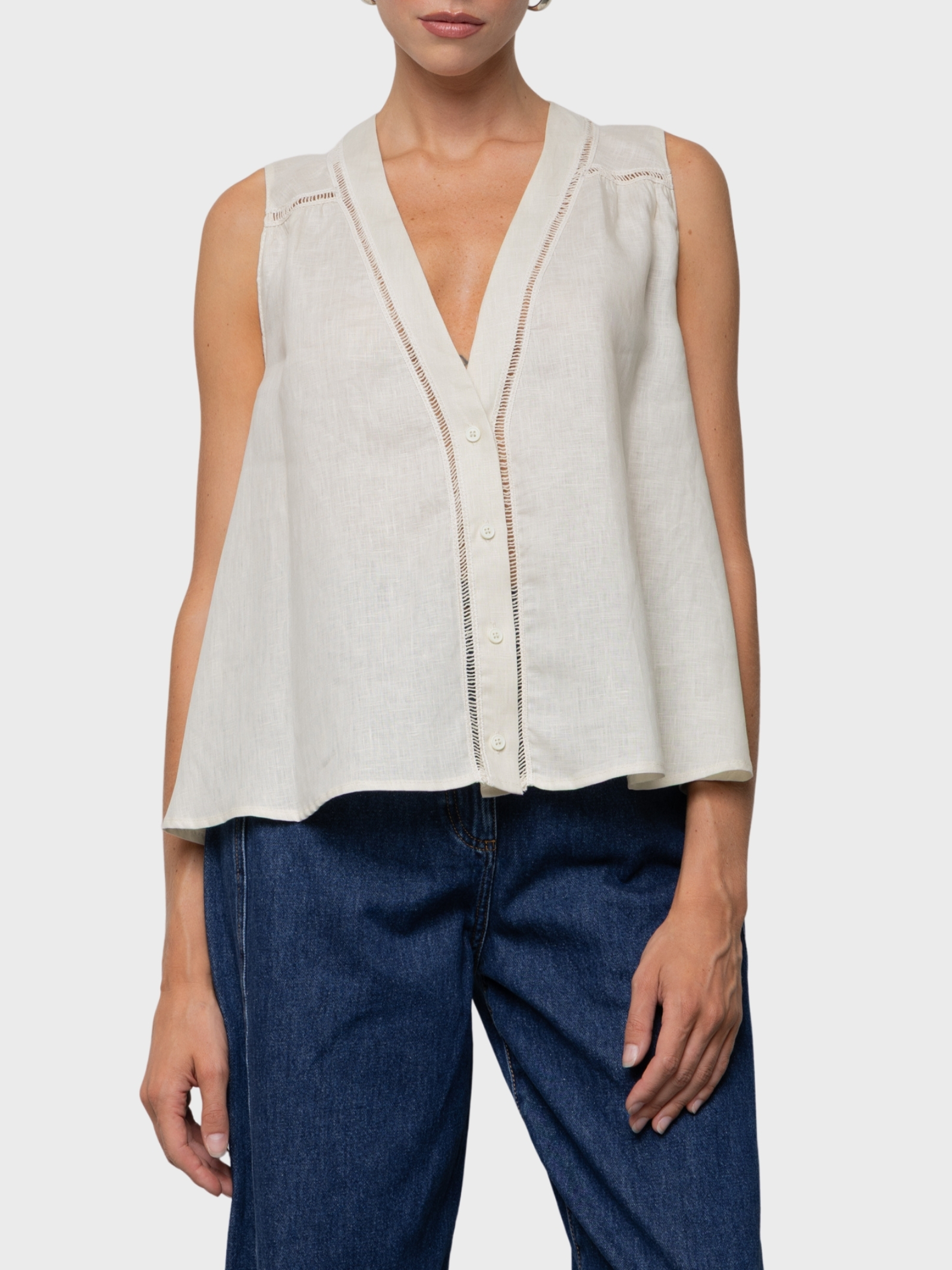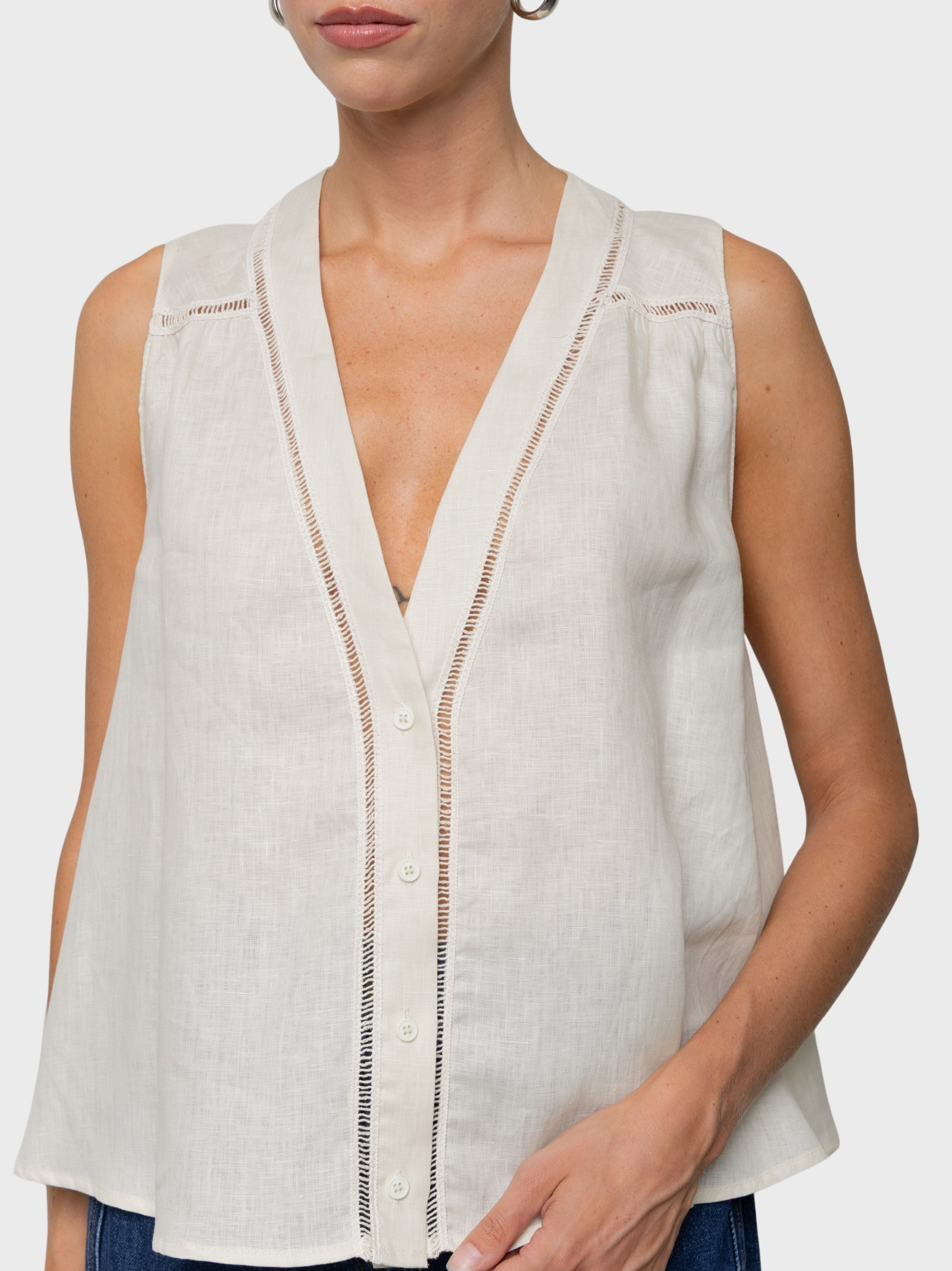 Top svasato in raso di seta stretch con dettaglio punto luce