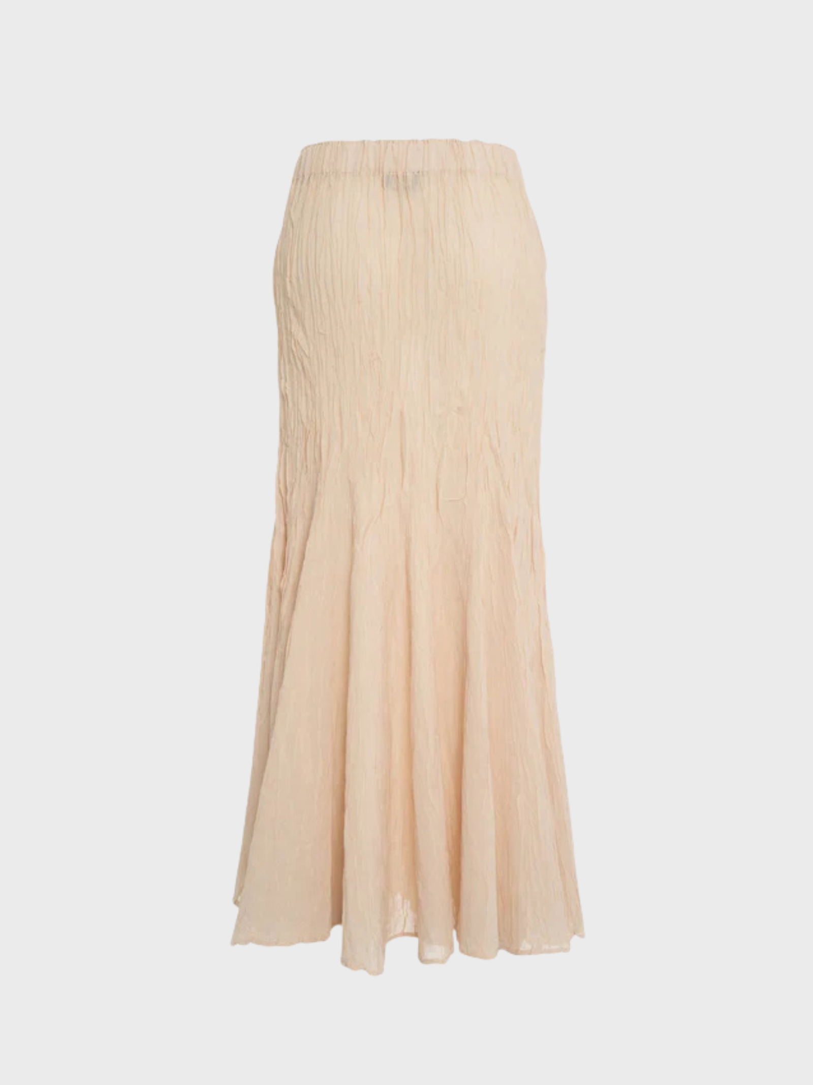 Gonna lunga svasata in seta con stampa floreale e dettagli paisley