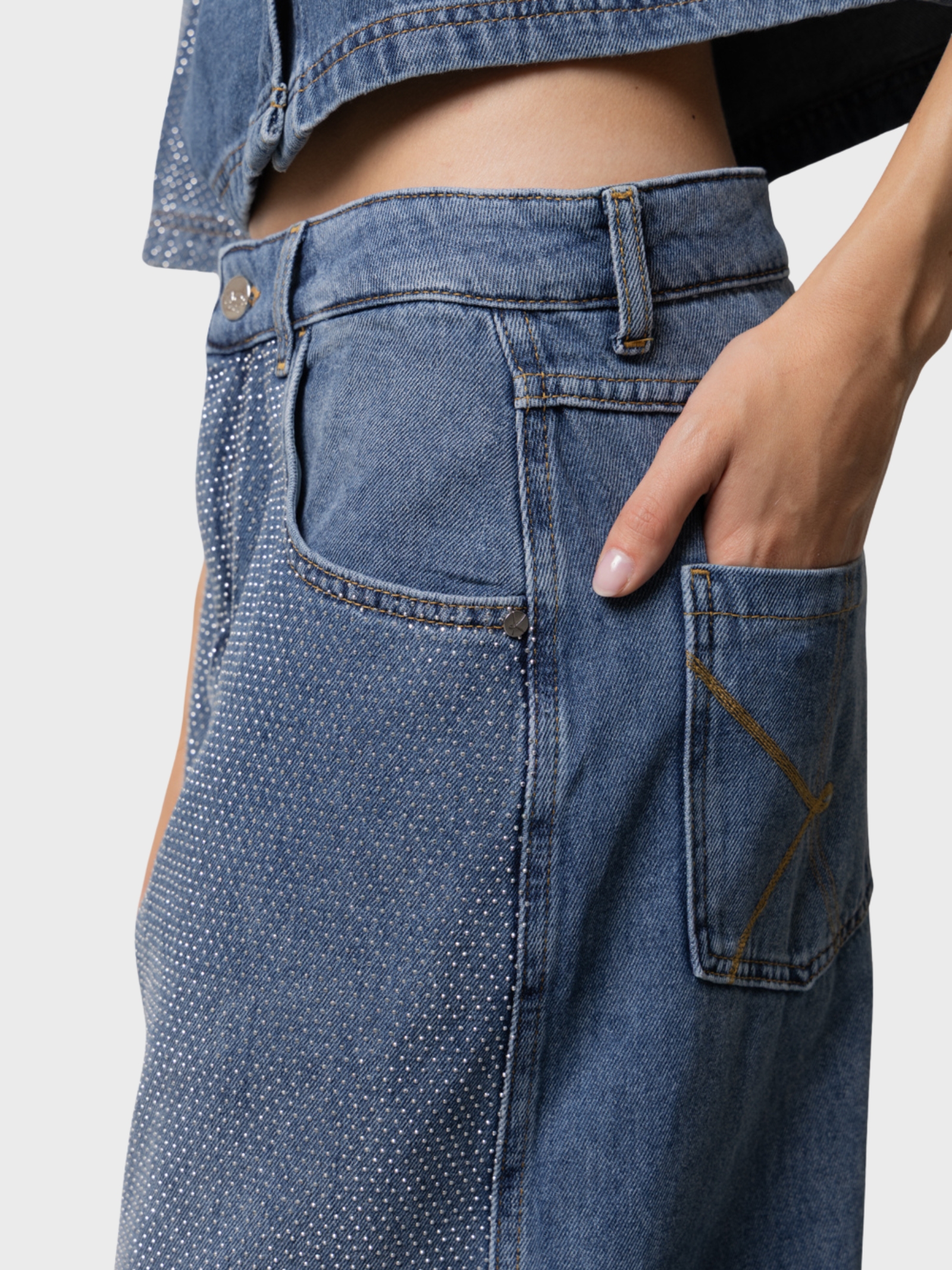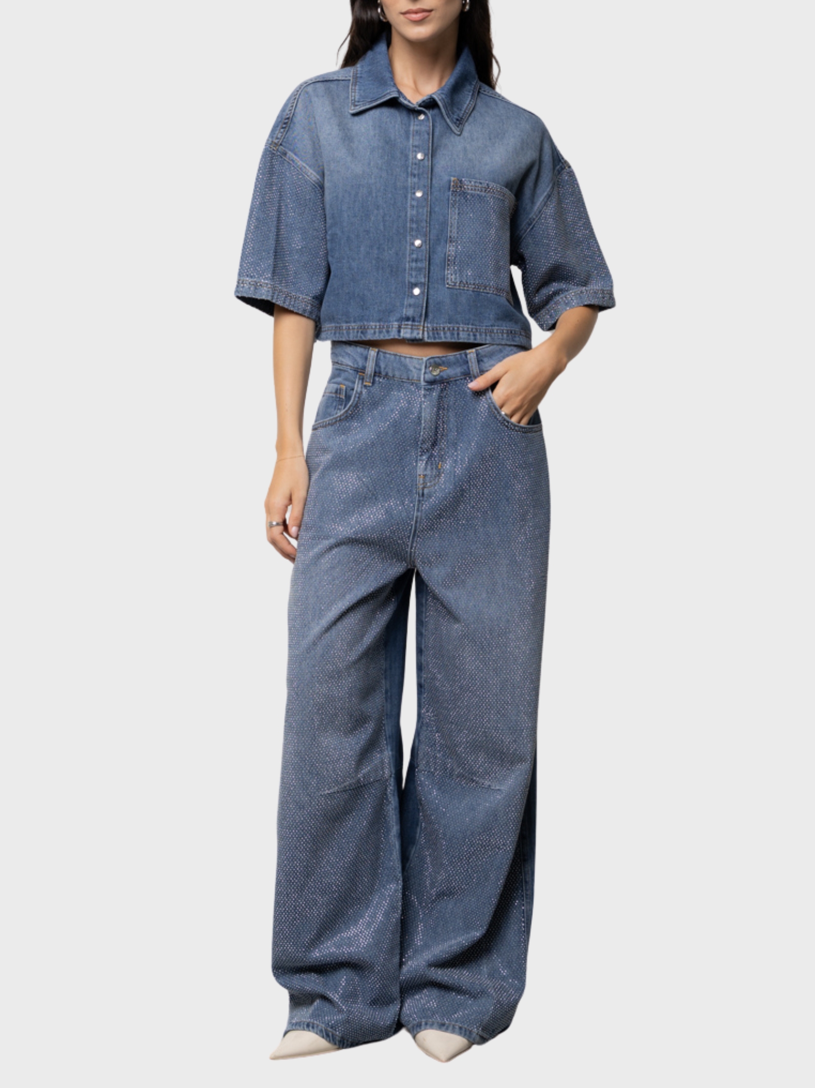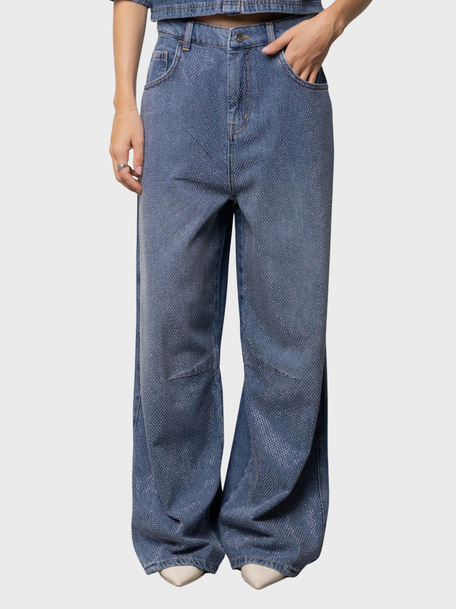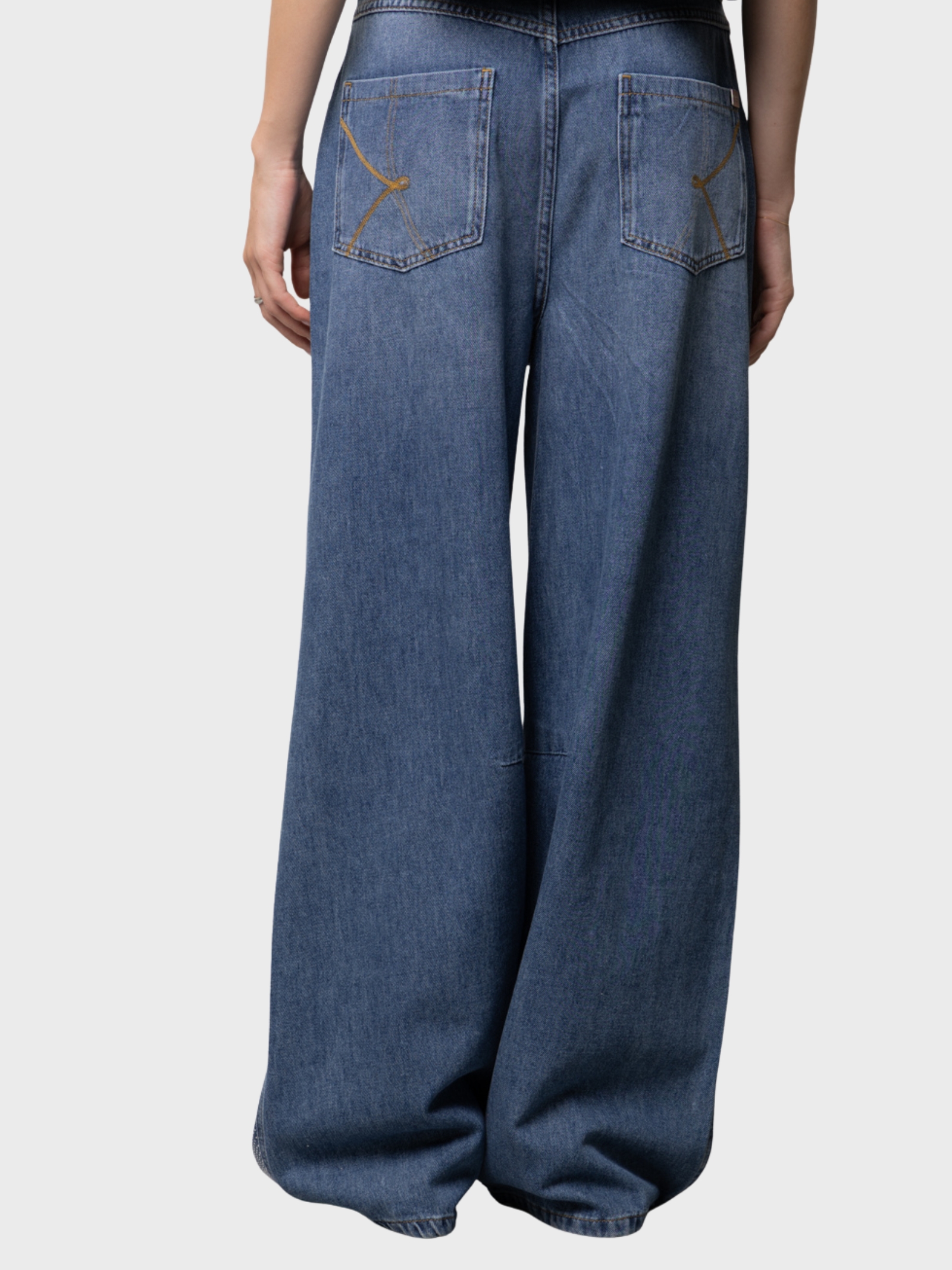 Pantalone ampio in twill di lino e viscosa con pinces e filo diamante