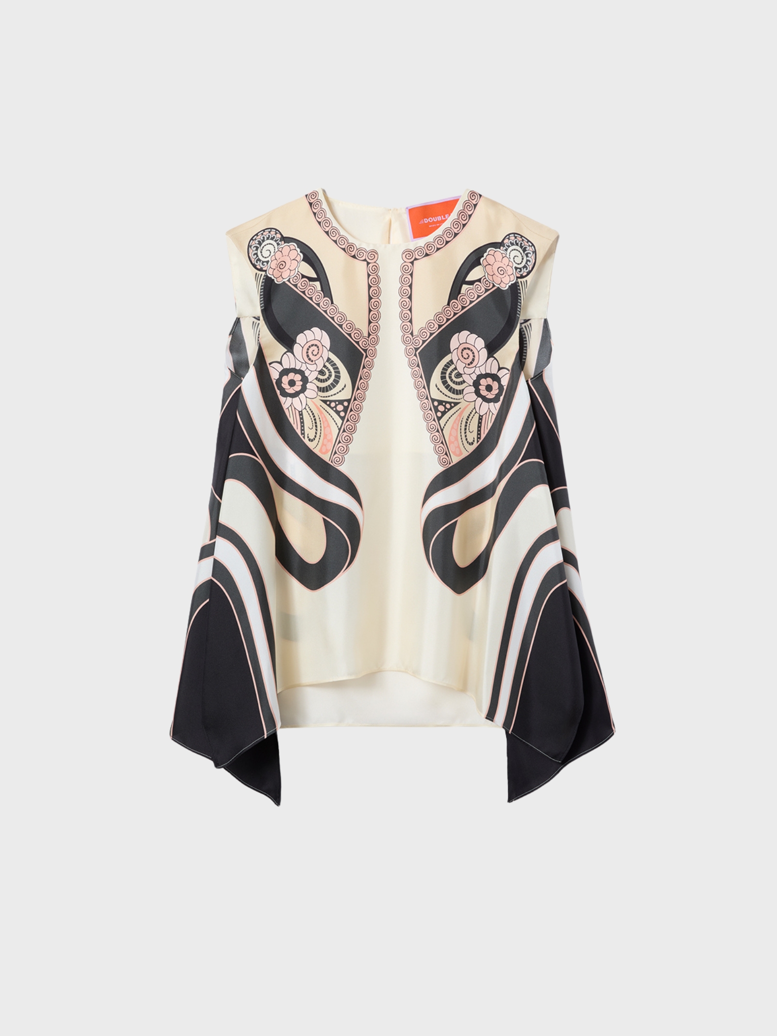 Canotta scollo a V in crepe de chine misto seta con bordo in tulle e filo diamante