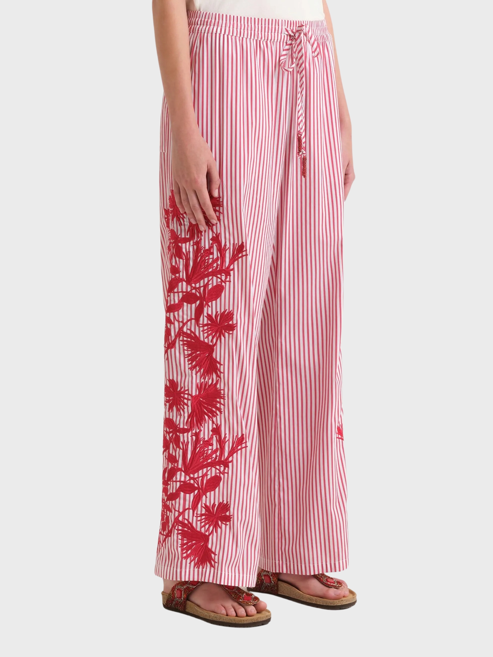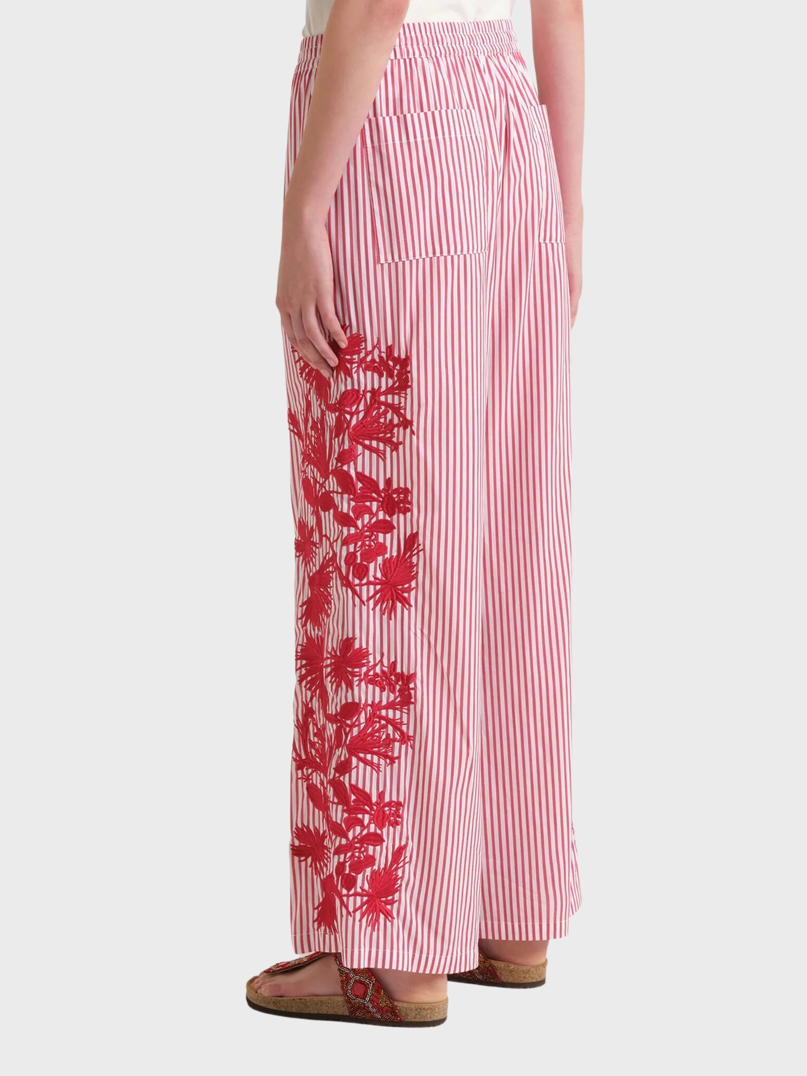 Jogger lungo in popeline con ricamo ramage
