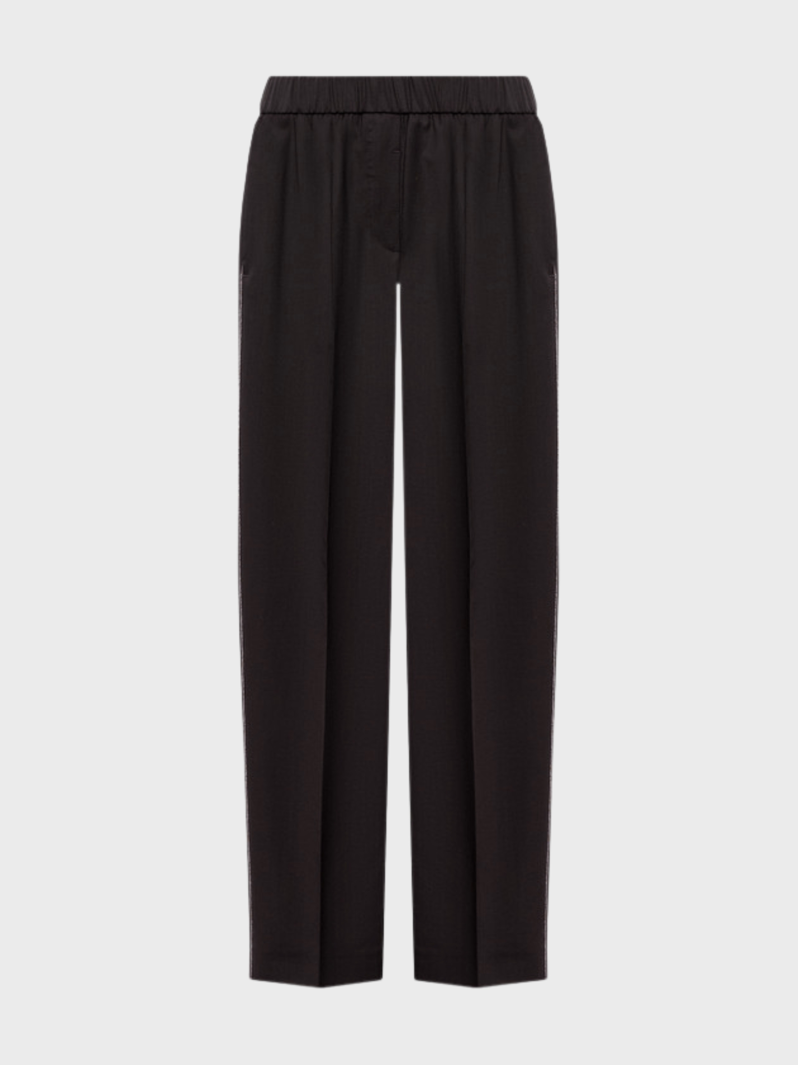Iconico pantalone con elastico in vita realizzato in leggera tela di lana merino Loro Piana, dalla linea raffinata ed elegante. Il dettaglio punto luce lungo i fianchi aggiunge un accento luminoso distintivo, valorizzando la silhouette. La vita regolare con elastico garantisce comfort e praticità, rendendolo ideale per impegni di lavoro e occasioni formali, soprattutto in abbinamento al blazer coordinato.